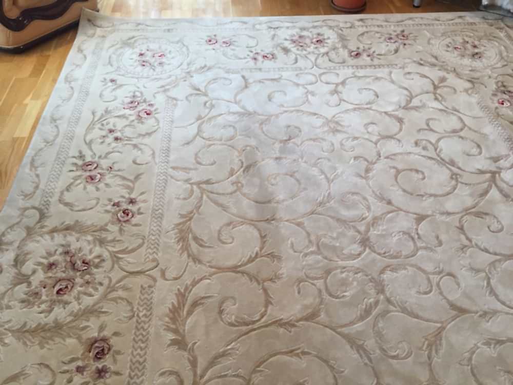 3 - при помощи специального оборудование загрязнение вытягивается из материала. Если после этого этапа пятна выводятся не до конца - наносится пятно-выводитель;